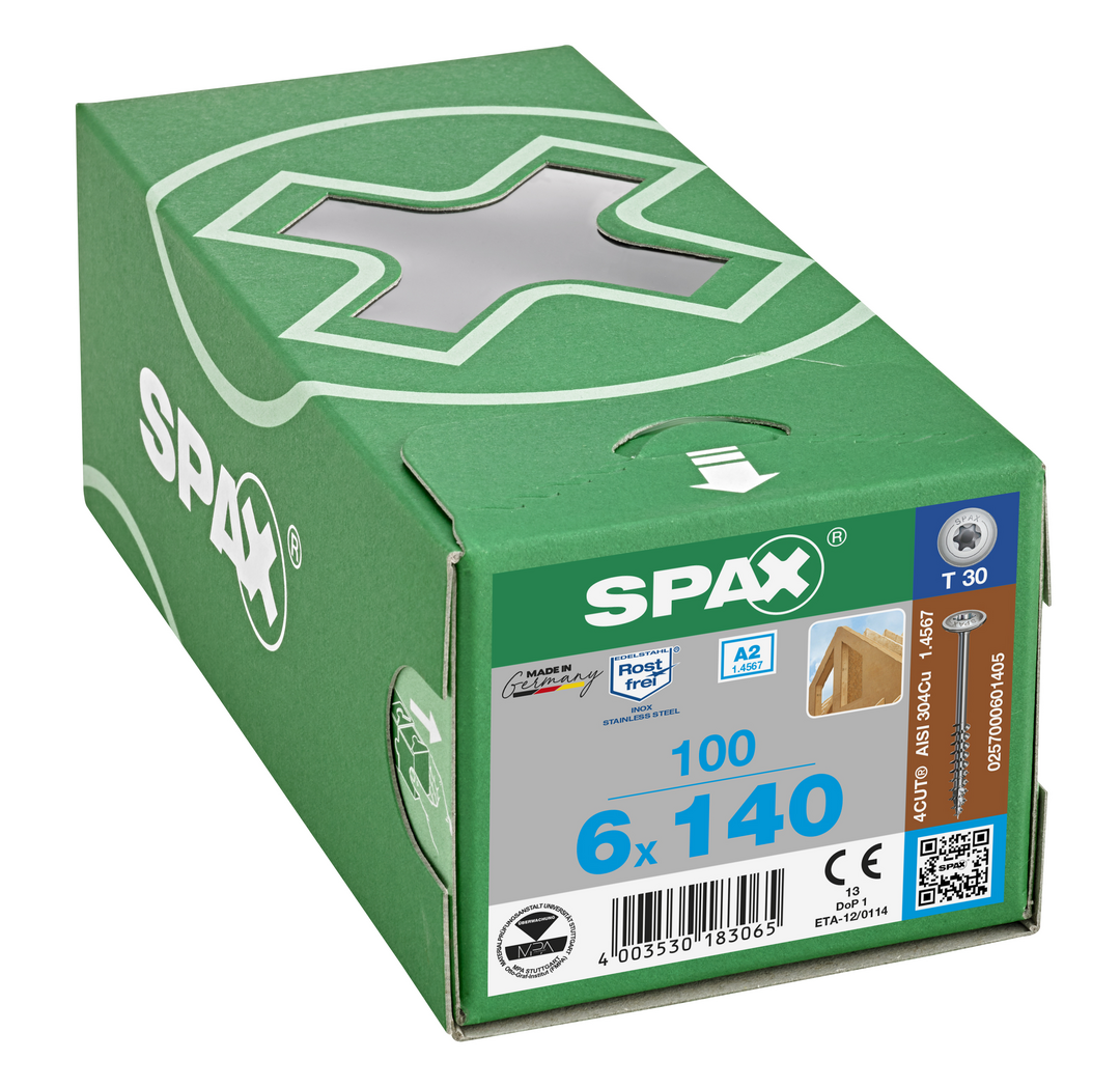 Produktinformationen "ABC Spax-Holzbauschrauben A2 Tellerkopf, I-Stern 6,0 x 140/68 Teilg A2 HP"