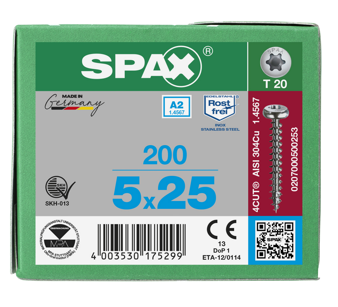 ABC Spax T-STAR plus Schraube A2 Halbrundkopf, I-Stern 5,0 x 25 mit 4CUT-Spitze, Vollgewinde, gleitbesch