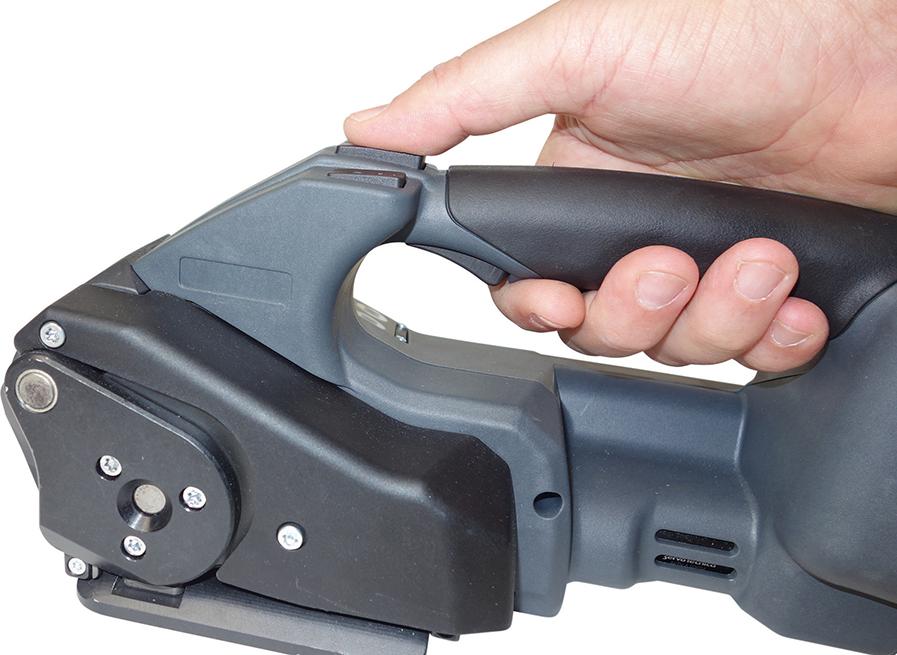 Dieses ergonomisch ausbalancierte Kombigerät ist zum Spannen und Verschließen von PP- und PET-Kunststoffbändern geeignet.