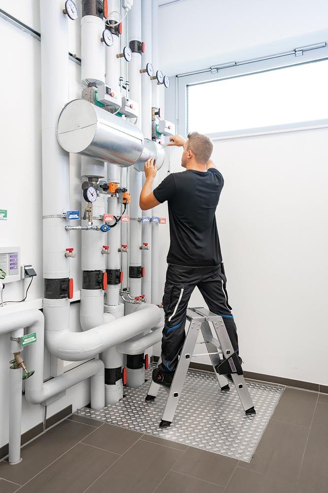 • Passend für alle Sprossenleitern • Aus pulverbeschichtetem Aluminium oder Aluminium • Bequemer, ermüdungsfreier Stand: gemäß TRBS 2121 Teil 2 • Höchste Rutschhemmungsklasse R13: dank Plattformbelag mit Korundeinstreuung • Belastbarkeit: 150 kg