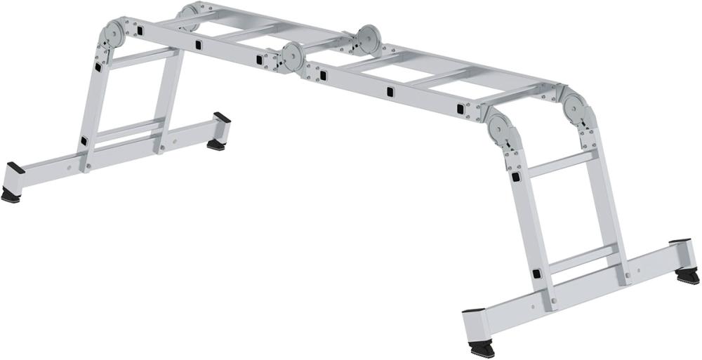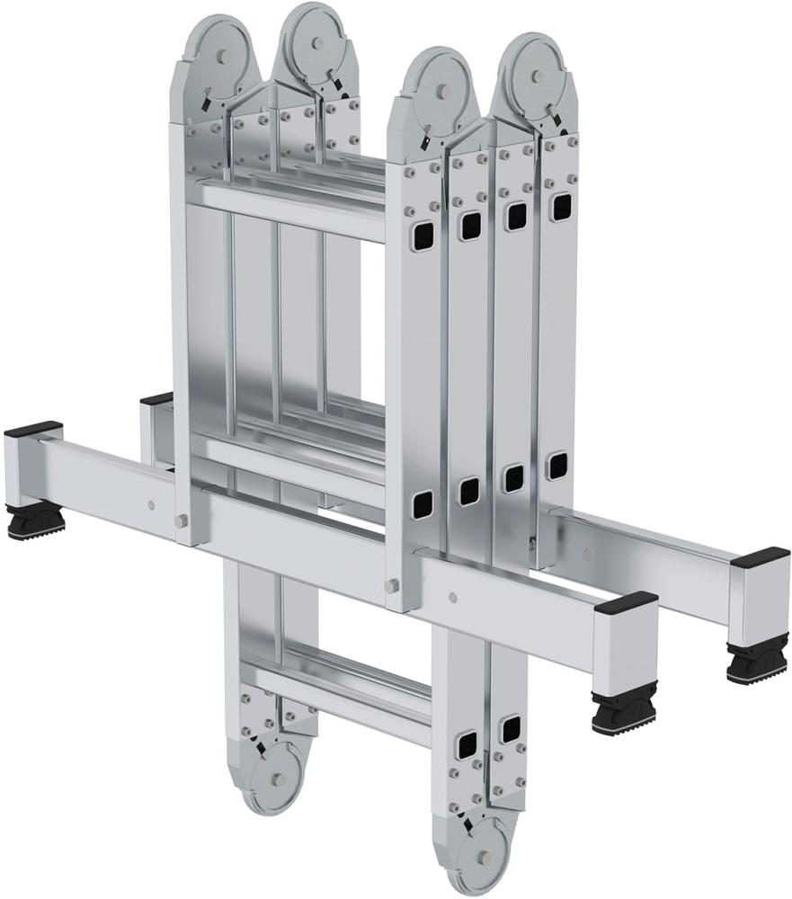 Hinweis: Nach TRBS 2121 Teil 2 wird zum Arbeiten auf dieser Leiter ein passendes Zubehör benötigt. Nach DIN EN 131-4 muss bei einer Vielzweckleiter, die als Arbeitsbühne verwendet werden kann, eine Plattform mitbestellt werden (z. B. Aluminium Riffelblech).