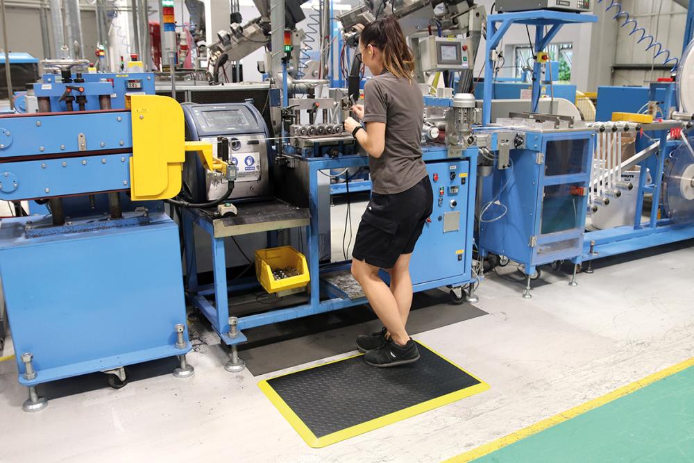Diese Anti-Ermüdungsmatte steigert den Komfort für die Mitarbeiter, die im Stehen arbeiten müssen.