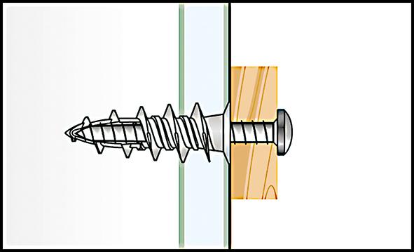 • Geeignet für die Befestigung in Gipskartonplatten und Gipsfaserplatten