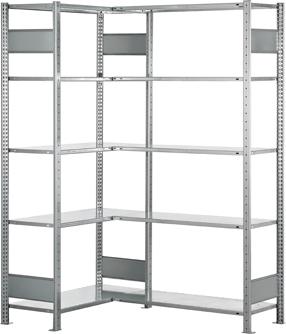 Dieses Eckregal ist einseitig nutzbar und spart Platz in jedem Lager.