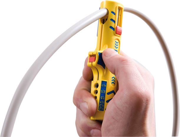 •	Zum Abisolieren von verschiedenen Kabeltypen, z. B. NYM 3 x 1,5 mm² bis 5 x 2,5 mm²