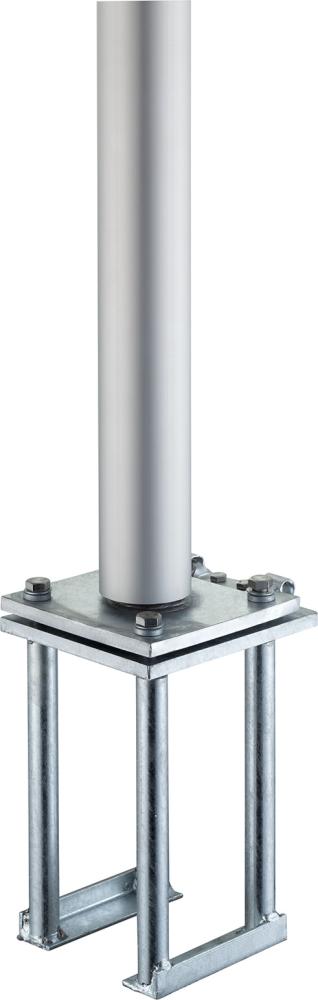 • Befestigungsarten: Kunststoff-Bodenhülse zum Einbetonieren, Alu-Bodenhülse als Zentrierkeil-Bodenhalterung, Kippgelenk innenliegend