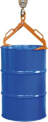 Dieser Scherengreifer dient der Aufnahme von liegenden oder stehenden 200-l-Stahlspundfässern.