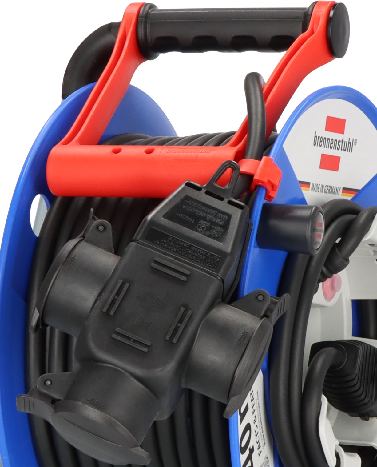 Die Garant G Kabeltrommel IP 44 aus Spezialkunststoff mit dreifach Gummikupplung ist für den Einsatz im Innen und Außenbereich geeignet. Die Kabeltrommel mit 3-fach Verteilerdose ermöglicht ihnen zeitgleich mehrere Geräte zu betrieben z.B. können Sie Radio und Licht und zeitgleich eine Bohrmaschine anschließen. Die Kabeltrommel mit Verteilerdose überzeugt außerdem durch folgende Eigenschaften: