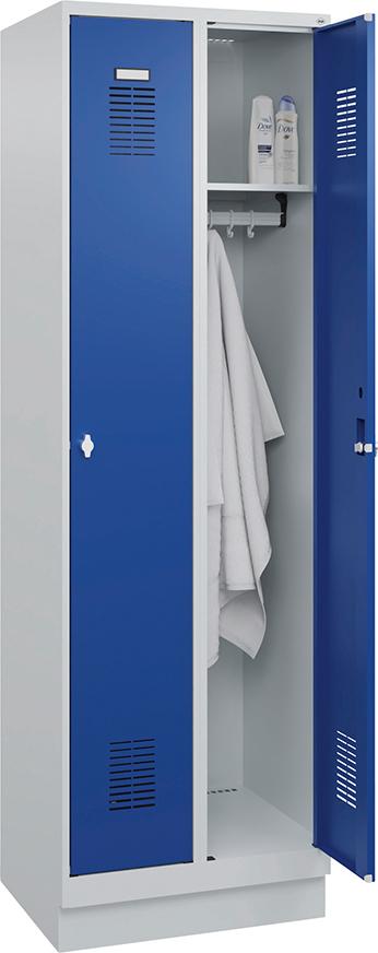 Garderobenschrank FORUM 2 Abteile RAL 7035/5010 Sockel 7035mit Sockel Selbstmontage