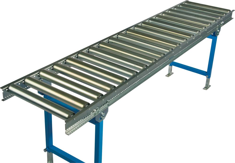 Die Leicht-Rollenbahnen sind für Güter bis 40 kg/Stück (Richtwert) ausgelegt. Wichtig ist jedoch der gewählte Stützenabstand (max. Last zwischen 2 Stützen).