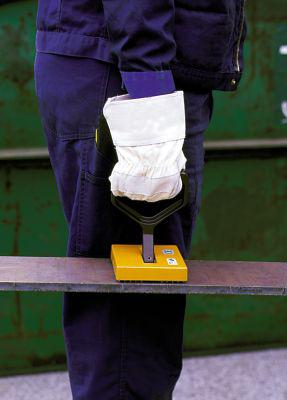 Die magnetische Handtrageklaue wird beim waagerechten und senkrechten Stahlblechtransport  eingesetzt. Außerdem kommt sie beim Abheben von Blechen vom Stapel, Herausziehen von  Blechtafeln aus Regalen oder Transport von flächigen Teilen aus magnetisierbarem Stahl zum  Einsatz.