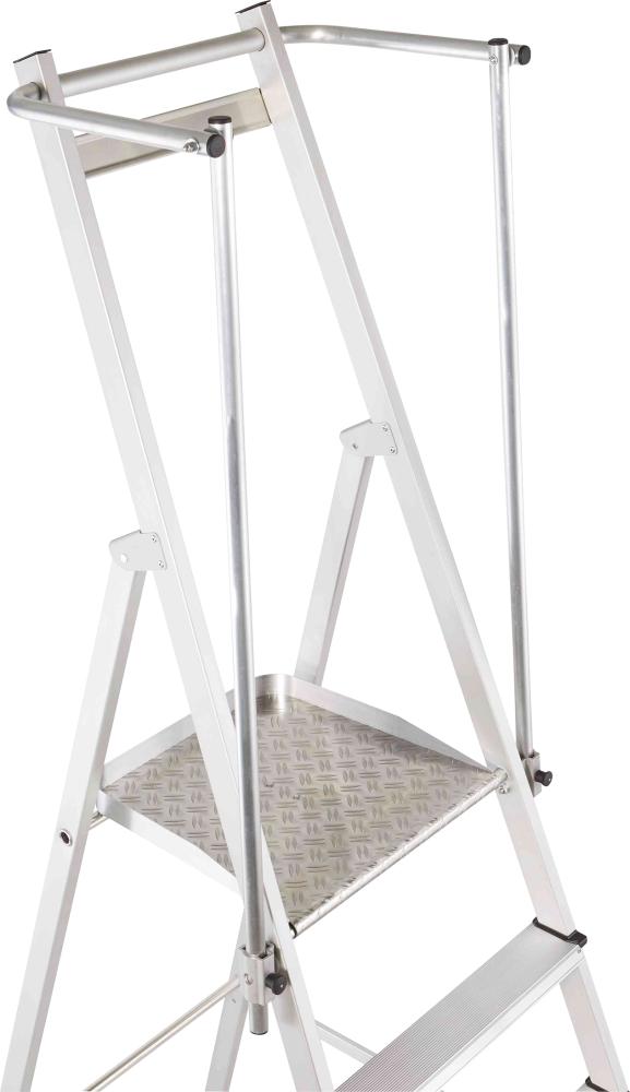 • Arbeitsplattform: geriffelt, 400 x 400 mm, mit dreiseitigem Sicherheitsgeländer (Höhe 1000 mm)