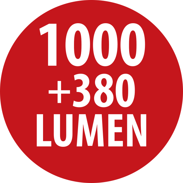 - Lichtstrom: 1000lm (vorne)+ 380lm (Spot)