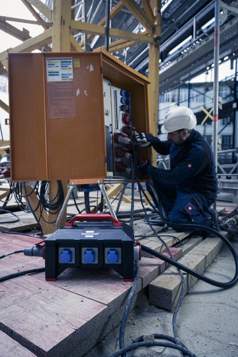 Der Gummi-Stromverteiler von Brennenstuhl mit 2m Kabel und ergonomisch geformten Tragegriff eignet sich ideal für den harten und ständigen Einsatz im Freien. Mit den FI- und LS-Schaltern bietet der Stromverteiler eine hohe Betriebssicherheit. Er überzeugt außerdem durch folgende Eigenschaften: