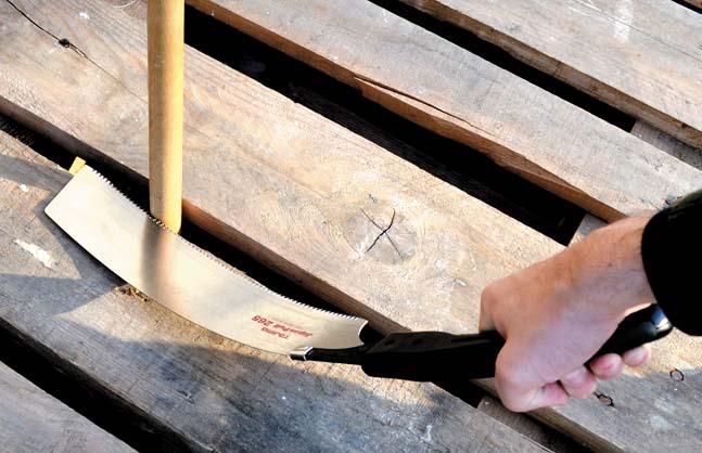 •	Wechseln des Sägeblatts durch Abknicken des Handgriffes