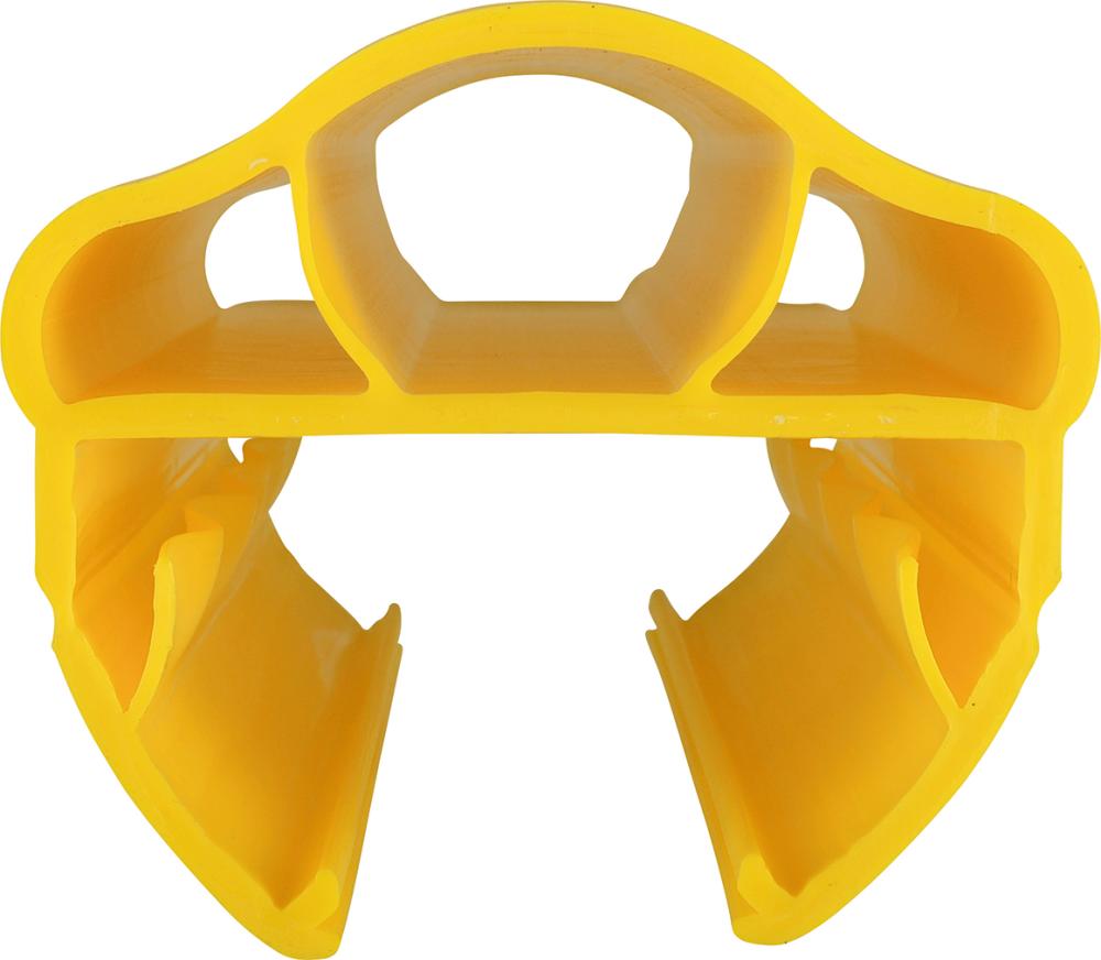 • Wirkungsweise: elastisch, rückfedernd und formstabil. Springt nach dem Aufprall in seine alte Form zurück. Durch die runde, feste Bauweise werden die Staplergabeln vom Regalständer abgelenkt, und das Risiko einer direkten Kollision wird vermindert