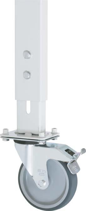 Ausführung: 2 Bock- und 2 Lenkrollen mit Feststeller.