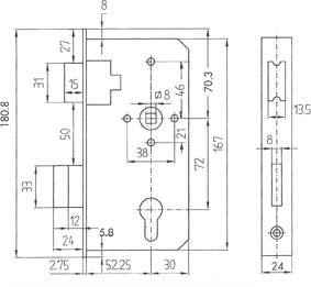• Schloss Eisen verzinkt, Schlossgehäuse Stahl, blank