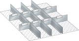 Schlitzwände-Set, 11-teilig, für Schubladen 27x36 E  Trennwände (27x36), 3 Schlitzwände 36 E, 10 Trennwände 9 E (Schubladen-Einteilungsmaterial), Lista