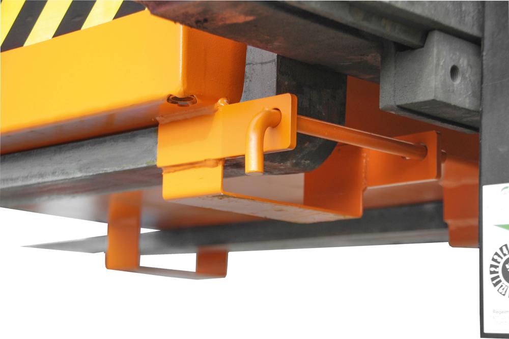 •	 Einstieg über Sicherungsstange:  mit Schwerkraftsicherung