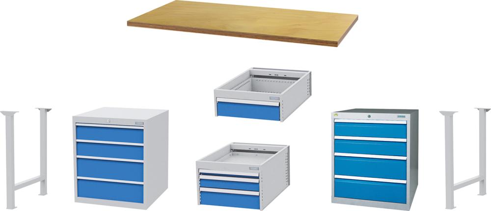 Reihenwerkbank, mit Hängeschubladen