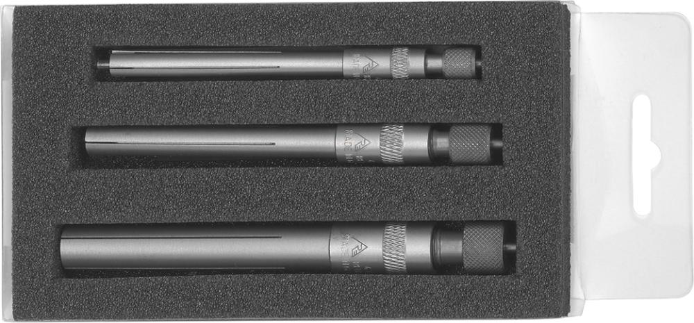 •	Körnerspitze spezialvergütet   •	Verstellbar über Rändelschraube   •	Für exaktes, versatzfreies Ankörnen auf Werkstücken   •	Zum gleichmäßigen Ausrichten der Zentrierhülse in der Bohrschablone oder im Musterstück     Lieferung: In Kunststoffverpackung.     Inhalt: 3 Zentrierkörner 6–8; 8–11; 11–16 mm.