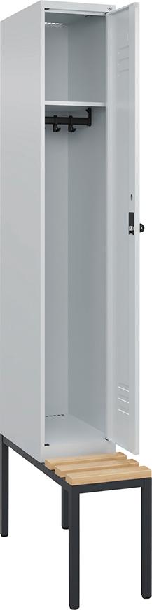 Garderobenschrank Classic PLUS mit untergebauter Sitzbank, Holzleisten