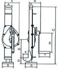 Diese robuste Stahlwinde   hat eine feste Hubklaue, eine Sicherheitskurbel, einen klappbaren Handgriff und eine  massive Bodenplatte. Die  Lastdruckbremse sichert den Halt der Last, die Lastaufnahme erfolgt auf der Klaue oder dem  Kopf der Stahlwinde.