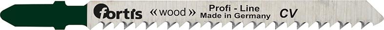 1 Chrom-Vanadium-Stahl, kreuzgeschliffen, konisch, rückenverzahnt, Schnittlänge 75 mm,  Zahnteilung 2,5 mm, für Weich-, Konstruktions- und Sperrholz, Multiplex-/Tischlerplatten,  MDF und Spanplatten, sehr sauberer, feiner Kurvenschnitt