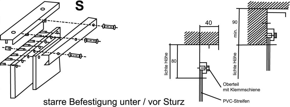 • Befestigungsart W, beweglich: Befestigung vor dem Sturz