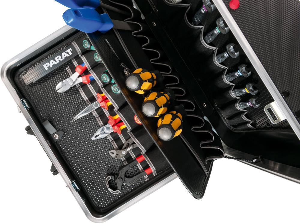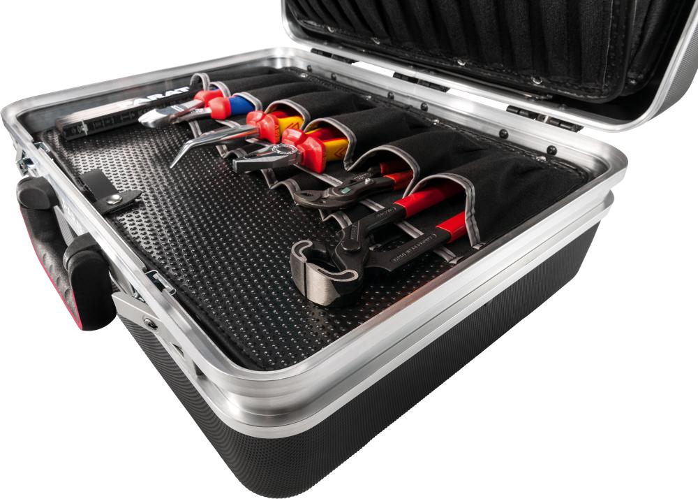 •	 Mit strapazierfähigen Werkzeugtafeln aus Con-Pearl® (Kratzfestigkeit, Formstabilität,  Beständigkeit gegen Feuchtigkeit, Fette und Chemikalien)