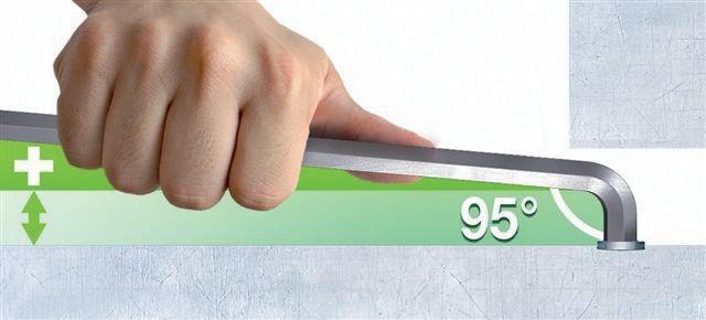 •	Kurzer Schenkel mit 95°-Biegung